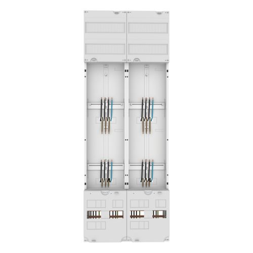 Das Zählerfeld ZSD-Z29A1074 von Eaton ist eine 2-stöckige Ausführung in Weiß (RAL 9016). Es verfügt über eine geschlossene Abdeckung mit Vorprägung sowie einen unteren Anschlussraum mit 5-poliger Sammelschiene.